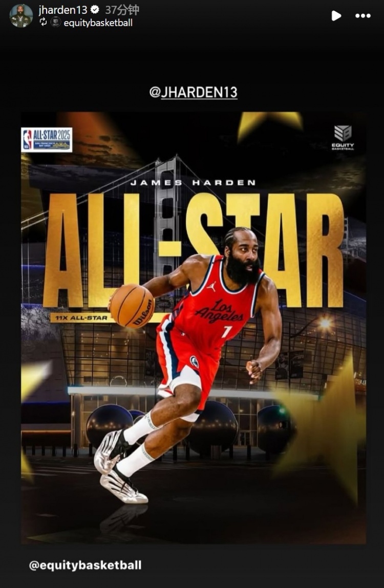- 时隔两年再进全明星!哈登连续转发报道贺信 已18条且还在继续
