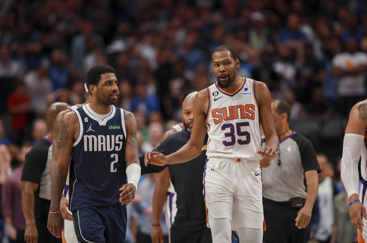赛季中期,当欧文再次提出交易申请,篮网将他送到独行侠,而不是他想去的湖人。之后,篮网将杜兰特送到太阳,实现了交易价值最大化。