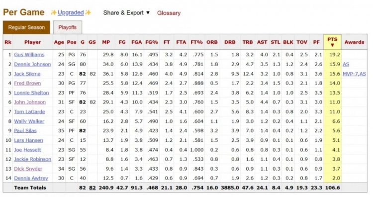 不过有一说一当时的超音速已经全面换血,核心球员古斯-威廉姆斯(前不久才刚刚去世)、丹尼斯-约翰逊、杰克-西克玛都是后面加入的