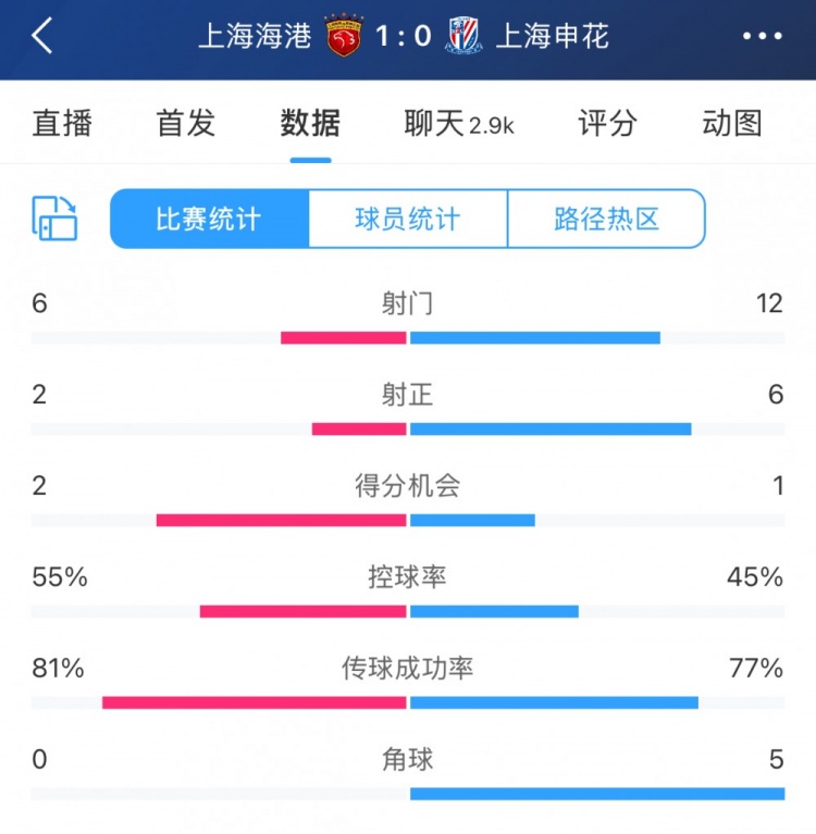 - 超级杯半场数据:射门12-6、射正6-2,申花占优无奈比分落后