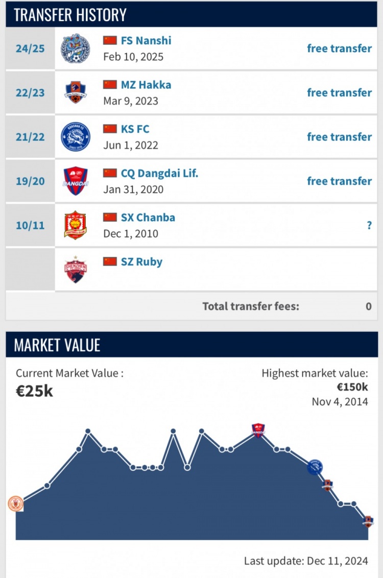 - 德转显示:陈俊旭加盟陕西联合,自由转会&合同年限未知